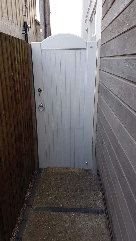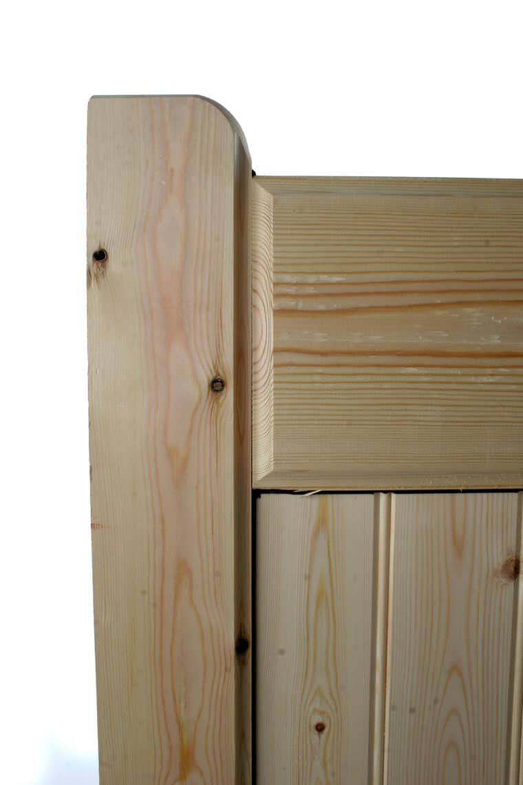 The Top Rails of our Wooden Gates are rounded to act as a water shed and we also seal the wooden gates with frame sealant to keep as much moisture out as possible.